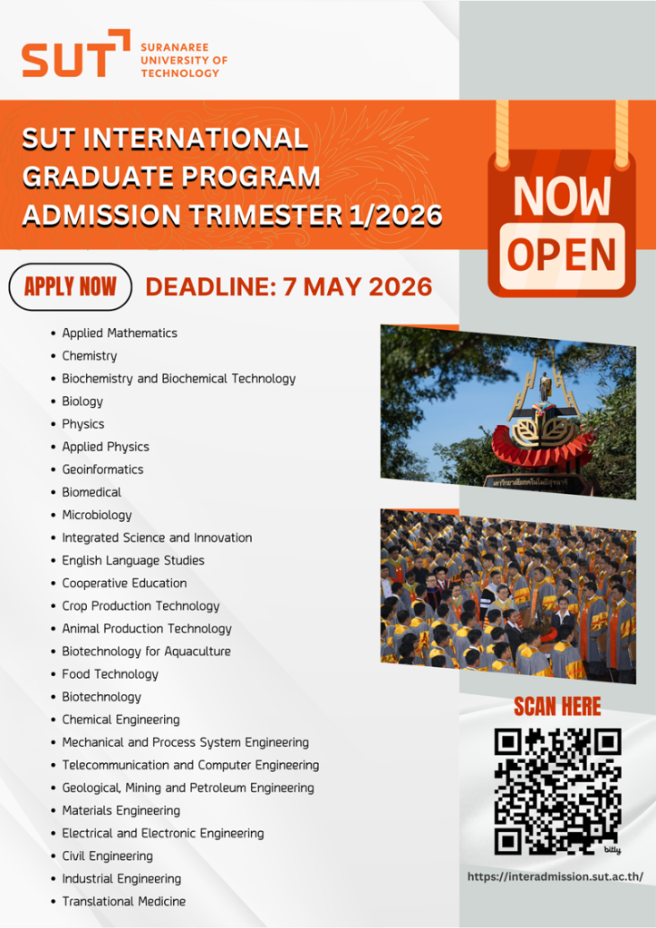 Suranaree University of Technology is now open for new student admission in Academic year 2026